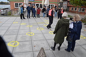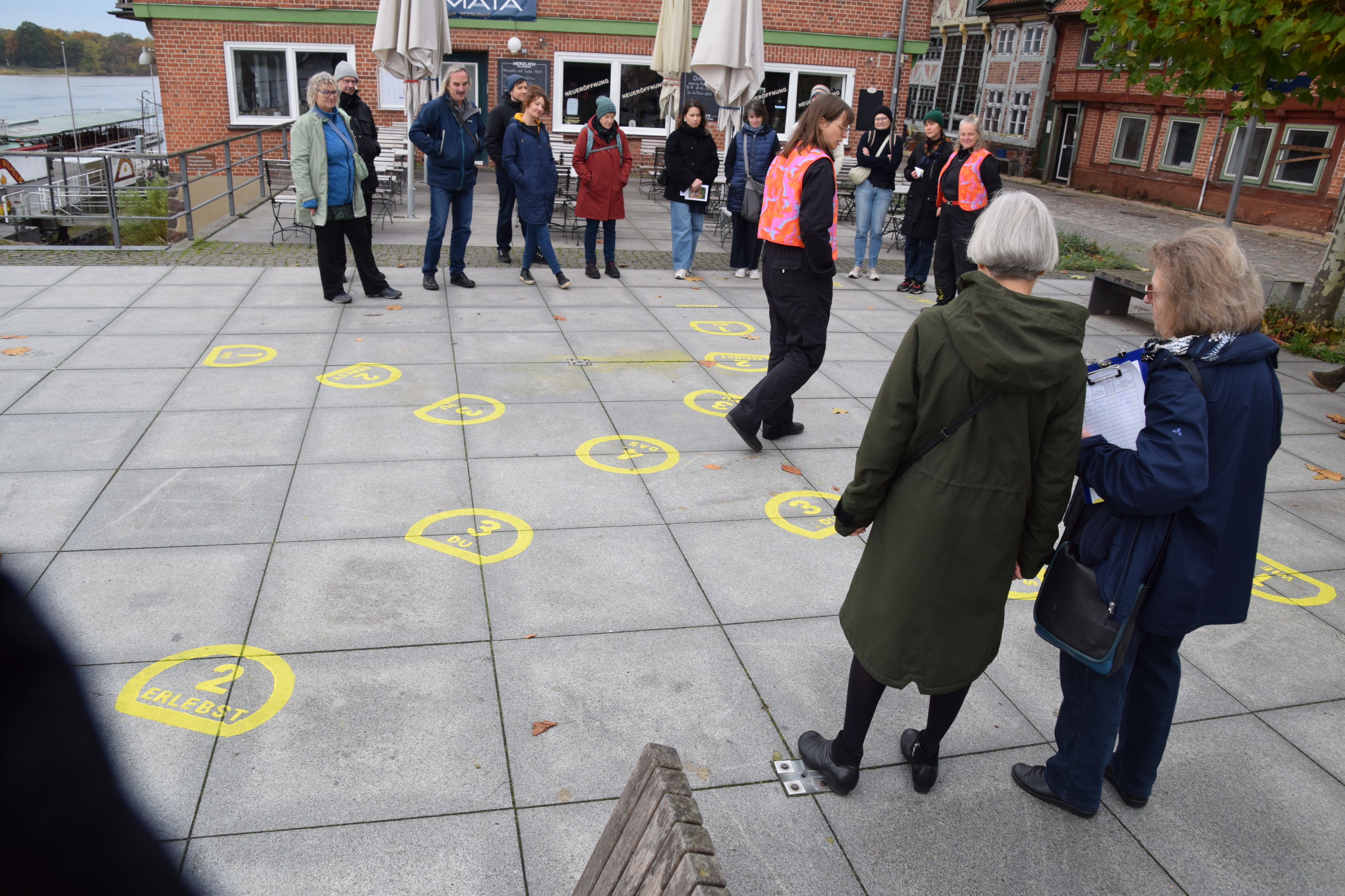 Begleitend zu den Spielfeldern fanden Rundgänge mit den Lauenburger Bürger:innen statt. Dabei wurde das Projekt in einem lockeren Walk-and-Talk-Format weitergetragen, bei dem lokale Akteure und Interessierte gemeinsam durch die Stadt gingen und über Demokratie, Gesellschaft und die Bedeutung der behandelten Themen diskutierten. So wurden Bürger:innen zu einer aktiven Auseinandersetzung mit demokratischen Werten ermutigt und die öffentliche Wahrnehmung von gesellschaftlichen Fragen geschärft. Auch zu „Tag und Nacht für Demokratie – hoch3“ fand ein Rundgang statt: Link