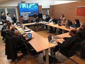 Im September trafen sich die jungen Menschen erstmals mit den Überlebenden des Brandanschlags. In der Internationalen Begegnungsstätte "Lohgerberei" hatten sie die Gelegenheit, Fragen zu stellen und ihre Ideen zu teilen. Auch Thomas Helbing, ein Bildhauer aus Barnitz, sowie Johann Tessmer, ein Student für Informationstechnologie und Design, waren dabei. Helbing brachte die Schüler:innen dazu, gemeinsam kreative Ideen für ein Mahnmal zu entwickeln, während Tessmer die Möglichkeit eines digitalen Gedenkraums anbot.